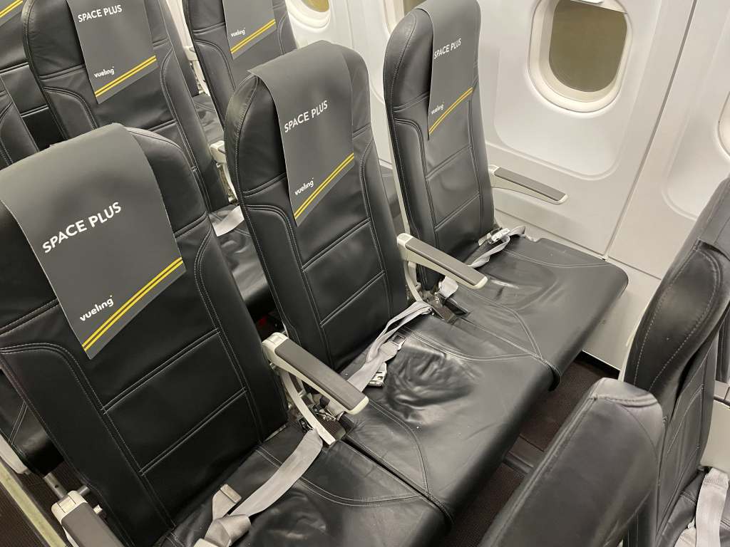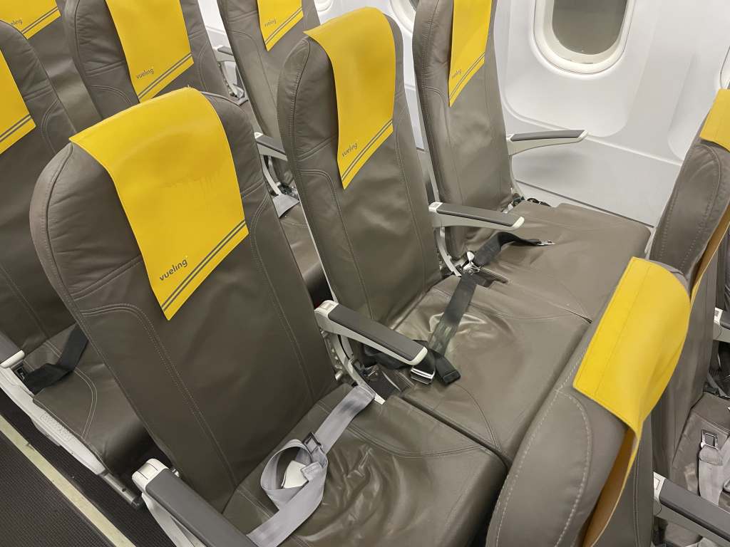 Der Airbus A320 von Vueling ist mit 180 Sitzen in einer reinen Economy-Class-Bestuhlung ausgestattet. Die Sitze sind, wie bei einem A320 üblich, in Reihen zu je 3 plus 3 Sitzen angeordnet. Die Kabine ist dabei jedoch in vier Kategorien eingeteilt: