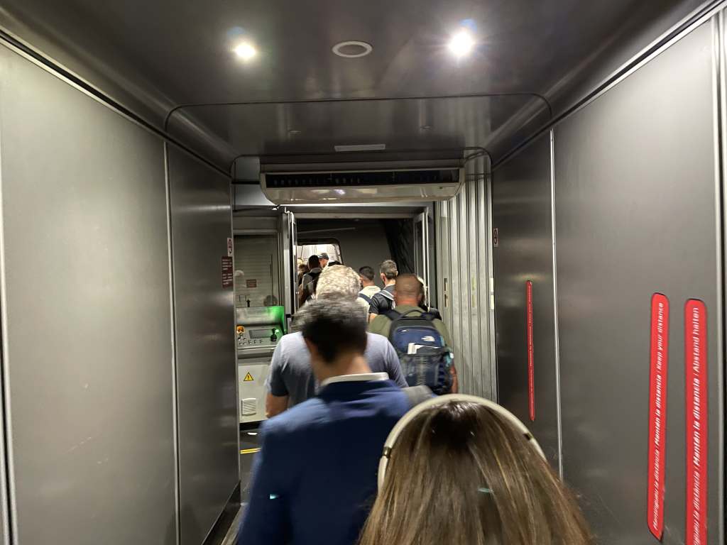Ich ließ das Boarding eine Weile laufen, bevor ich mich in die Warteschlange einreihte. Wie üblich bedeutet Boarding in Spanien nicht, dass man das Flugzeug bereits betreten darf. Stattdessen warteten alle Fluggäste noch in den Gängen darauf, dass tatsächlich eingestiegen werden durfte.