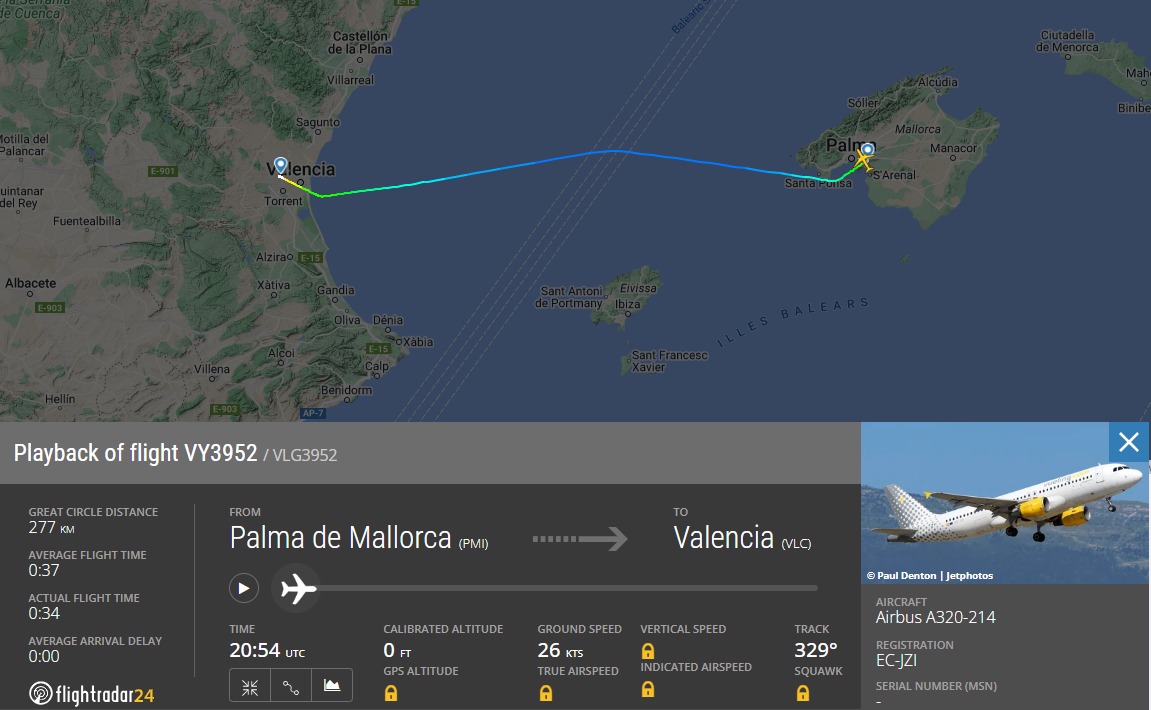 Vueling Economy Class im Airbus A320 von Palma de Mallorca (PMI) nach Valencia (VLC) | Flugdaten