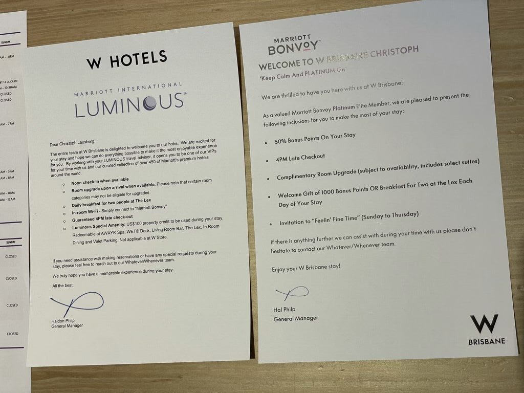 Über unsere neue Buchungsseite hat man beim W Brisbane Zugang zu besonderen Prefered Partner Programmen, die jedem Gast Zugang zu weiteren Vorteilen ohne Aufpreis bieten. Gerade im W Brisbane war es für mich ein no brainer, denn hier habe ich durch die Buchung über Frankfurtflyer noch folgende Vorteile erhalten, die über das Marriott Luminous Programm kommen.
