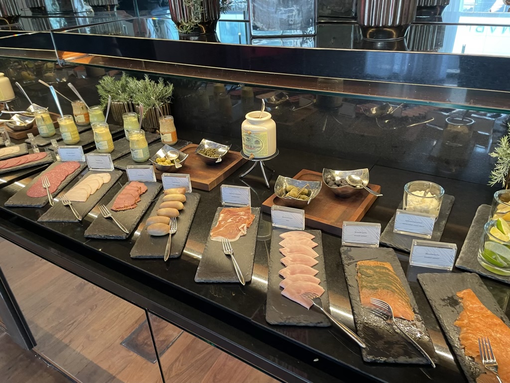Das Frühstück im Waldorf Astoria Berlin hat mich tatsächlich schon bei früheren Besuchen überzeugt, allerdings muss man hier wissen, dass nicht alles am recht kleinen Buffet serviert wird, wo man auch warme Speisen findet, sondern man kann die meisten Dinge bei den Kellnern bestellen. Hier wurde mir diesmal keine Karte angeboten und auch bis auf Kaffee nichts aktiv abgefragt, was ich bei einem Hotel dieser Klasse eigentlich anders erwarte. Allerdings habe ich meine Eier einfach bestellt, als mir der wunderschöne Cappuccino gebracht wurde und diese waren auch wie immer sehr gut.