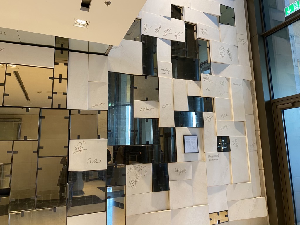 Ich bin tatsächlich erst am späten Nachmittag gegen 17 Uhr im Hotel angekommen und war nach einem langen Tag einfach froh hier angekommen zu sein. Als ich aus dem Taxi ausgestiegen bin wurde mir mein Koffer abgenommen und ich wurde an der Wand mit den Unterschriften der Prominenten Gäste (wann werde ich aufgefordert hier zu unterschreiben?) vorbei zur Rezeption geführt.