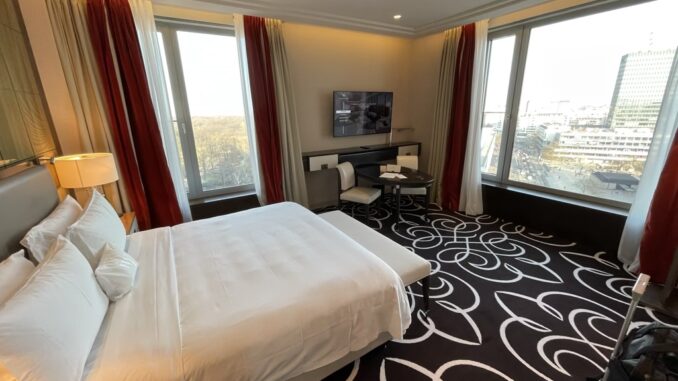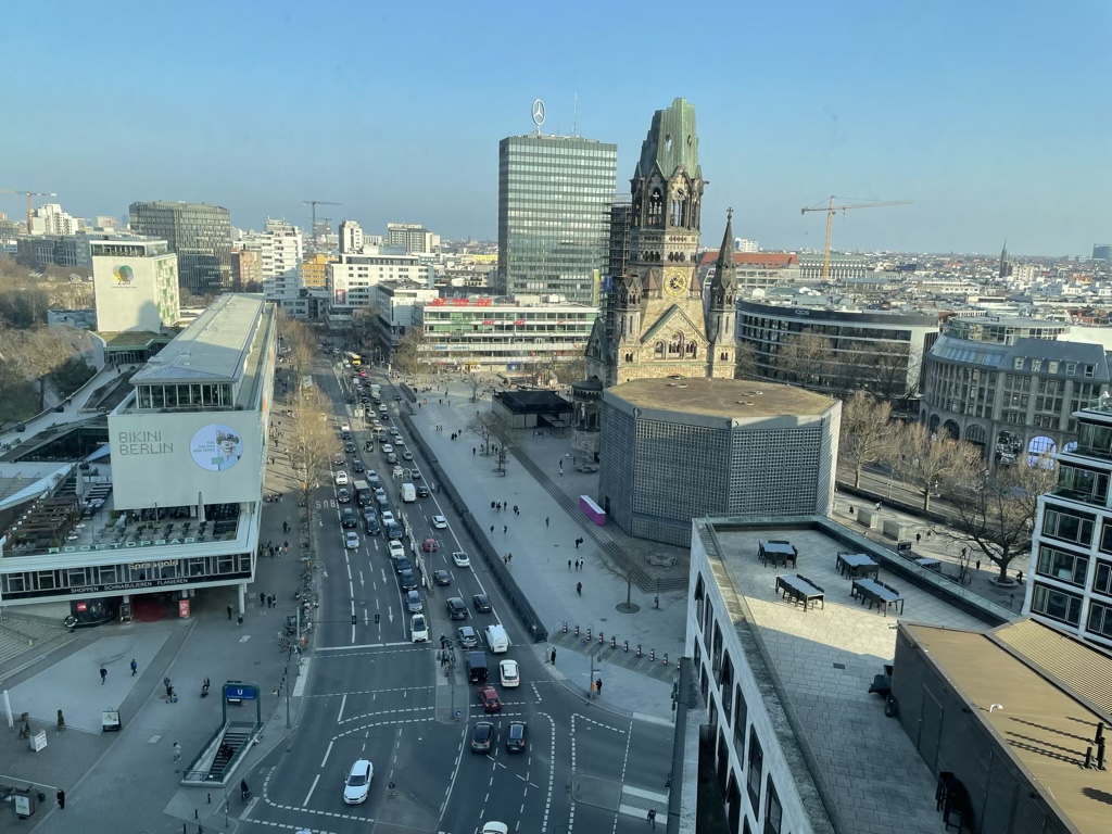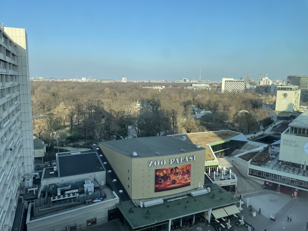 Im Zimmer angekommen wurde mir erst einmal eine kleine Einführung gegeben und vor allem der Blick sowohl auf die Gedächtniskirche, als auch auf den Tiergarten aus der 14. Etage war tatsächlich sehr schön und mit das Highlight des Zimmers.