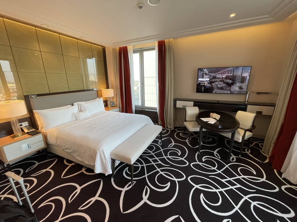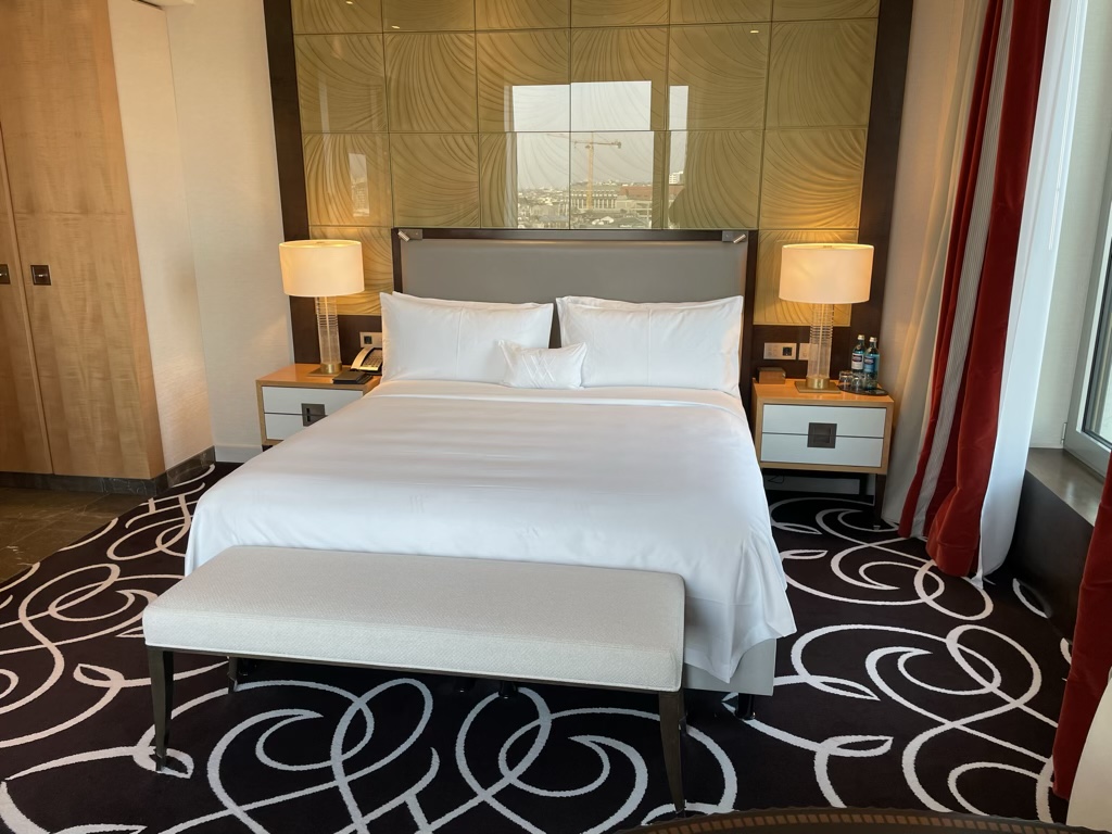 Nach dem zügigen Erledigen der Formalitäten begleitete man mich noch auf mein Zimmer und erinnerte mich an einige Details des Hotels, wie die Lage der Restaurants, Pool, Spa und man teilte mir auch mit, dass ich diesmal ein King Deluxe Room mit Memorial Church View erhalten hätte, was technisch gesehen sogar ein doppeltes Upgrade ist. Dies habe ich im Waldorf Astoria Berlin tatsächlich nicht erwartet, da man hier eigentlich eine recht strikte Politik bei Upgrades um eine Kategorie hat.