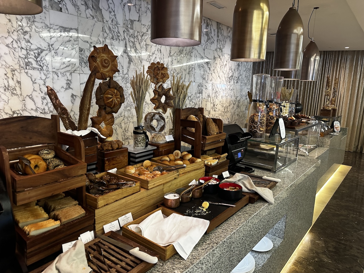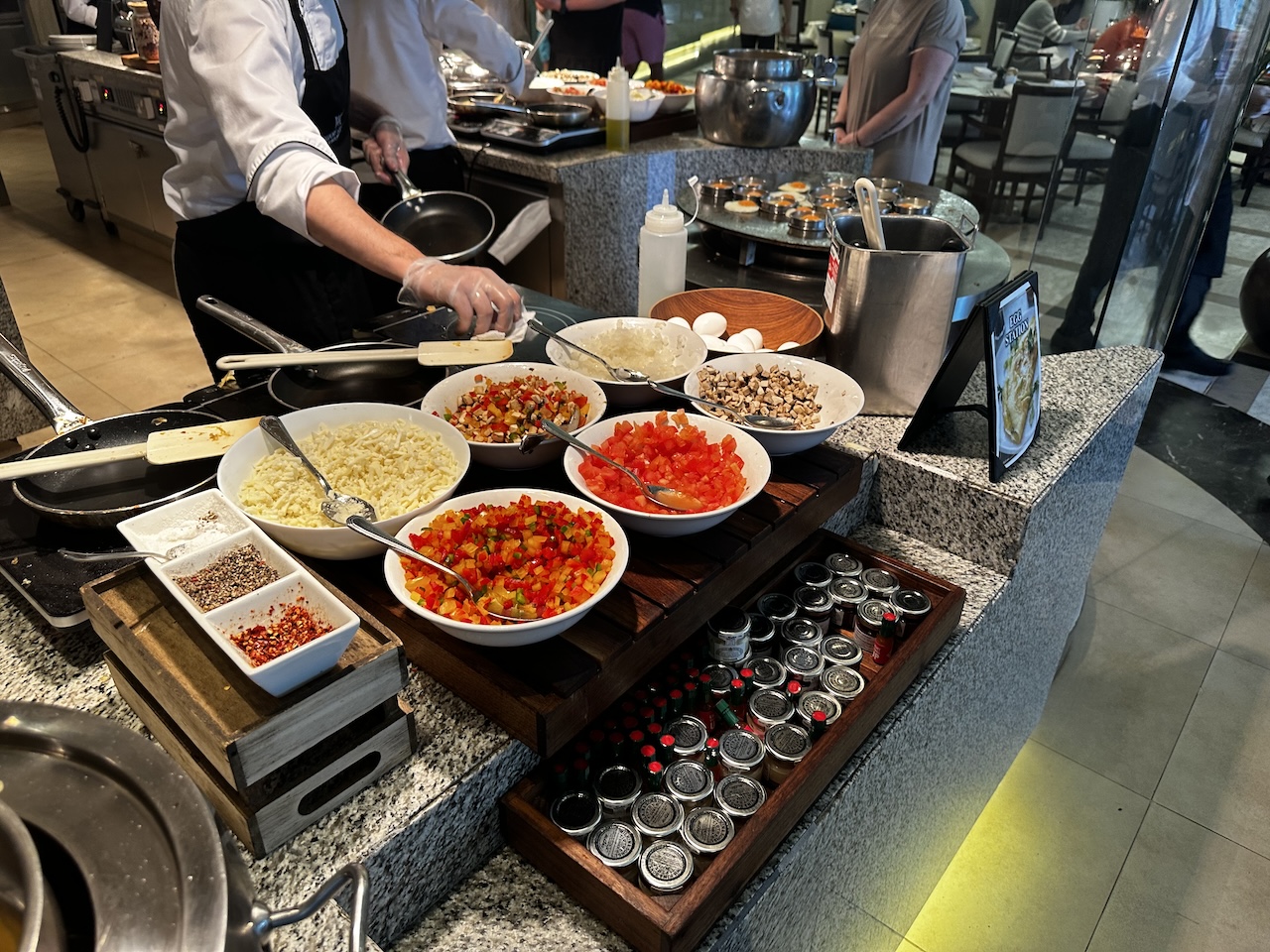 Das Frühstück wird als Buffet serviert, das Sortiment ist sehr breit. Kaffeespezialitäten werden von Hand zubereitet, es gibt mehrere Live Cooking Stationen. Gäste können klassisch frühstücken oder mit indischen, asiatischen bzw. arabischen Spezialitäten in den Tag starten.