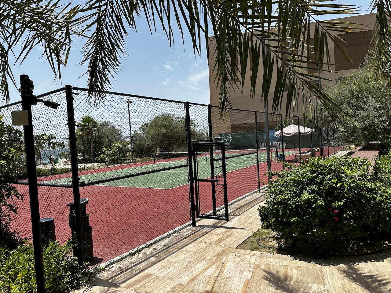 Zur Ausstattung gehören mehrere Pools inkl. einem Ruhebereich mit (unnötig) beheiztem Jacuzzi, Bars, Tenniscourt und einem großen Strandabschnitt.