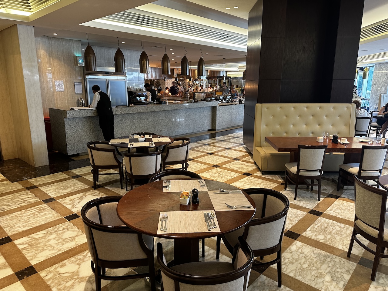 Zum Hotel gehören sieben Restaurants bzw. Bistro/Bars, darunter ein Asiate, das Buffetrestaurant und die Lobby Bar „Peacock Alley“.