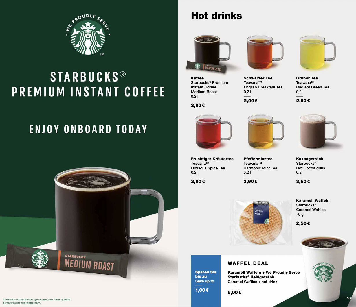 Die Preise sind durchaus akzeptabel, allerdings dauerte der Bordverkauf überraschend lange. Mein Kaffee war mit 2,90 Euro absolut im Rahmen und eigentlich freute ich mich über den Starbucks Kaffee. Dass man aber nur Kaffee zum anrühren hatte, war dann wieder enttäuschend.