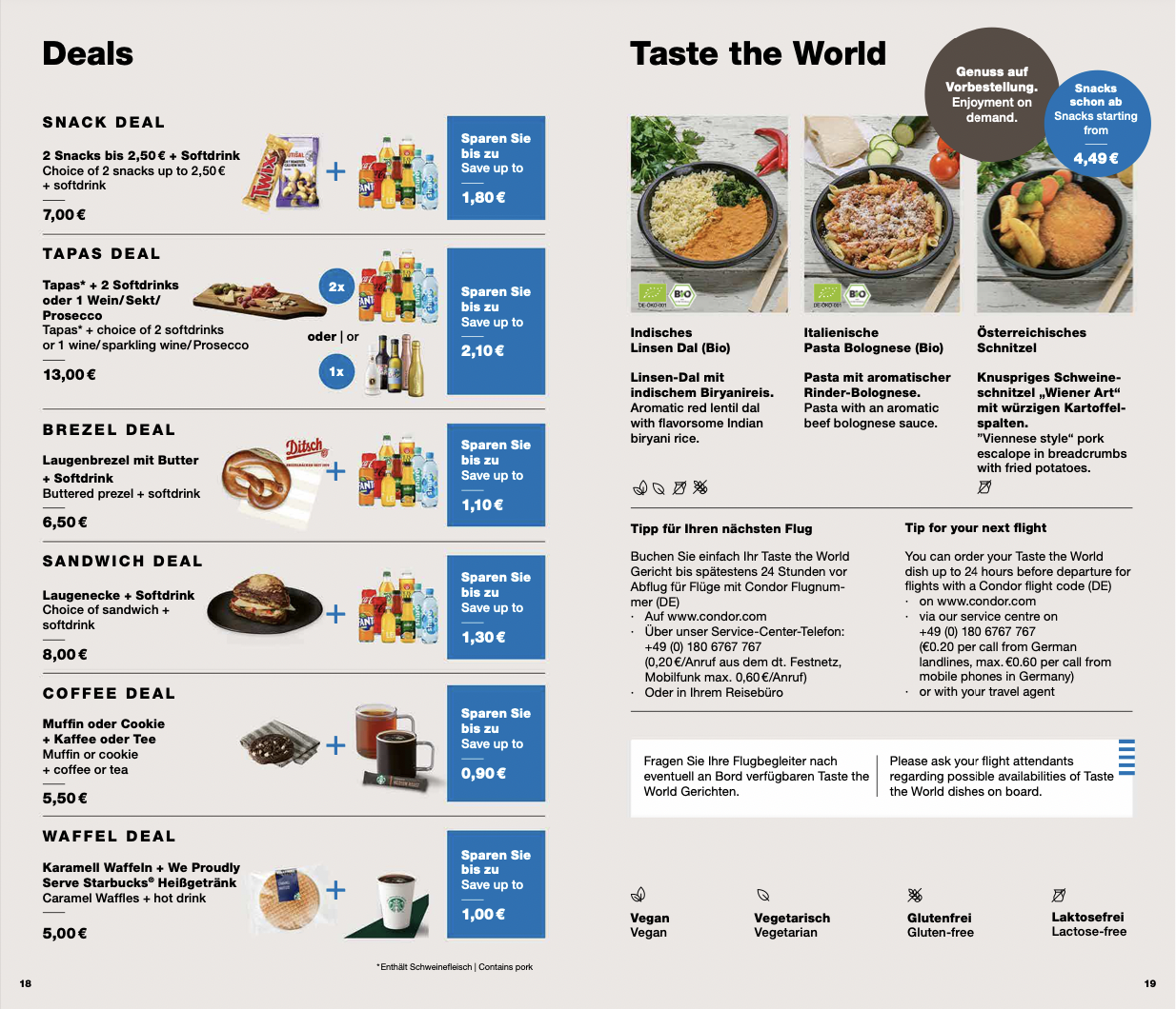 In der Condor Economy Class auf Kurzstrecken ist nichts an Service inklusive und man kann lediglich im Bordverkauf Essen und Getränke kaufen. Wer will kann auch warme Essen vorbestellen.