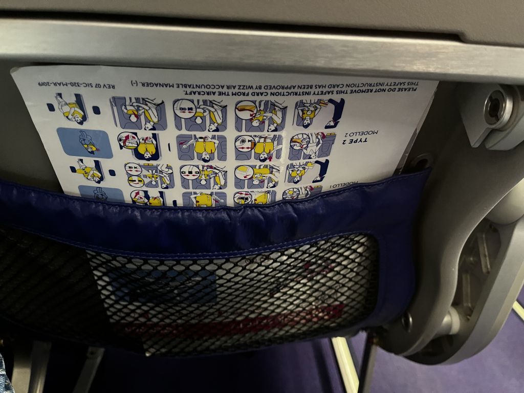 Der Sitzabstand wirkte doch etwas eng, aber für rund zwei bis drei Stunden durchaus ausreichend. Wobei ich mir bewusst gemacht habe, dass Wizzair diese Flugzeuge unter anderem auch nach Abu Dhabi und Dubai einsetzt. Keine verstellbare Kopfstütze, eine sehr enge Bestuhlung und kein Inflight-Entertainment-System machen solch einen Flug sicher zu keinem Vergnügen.
