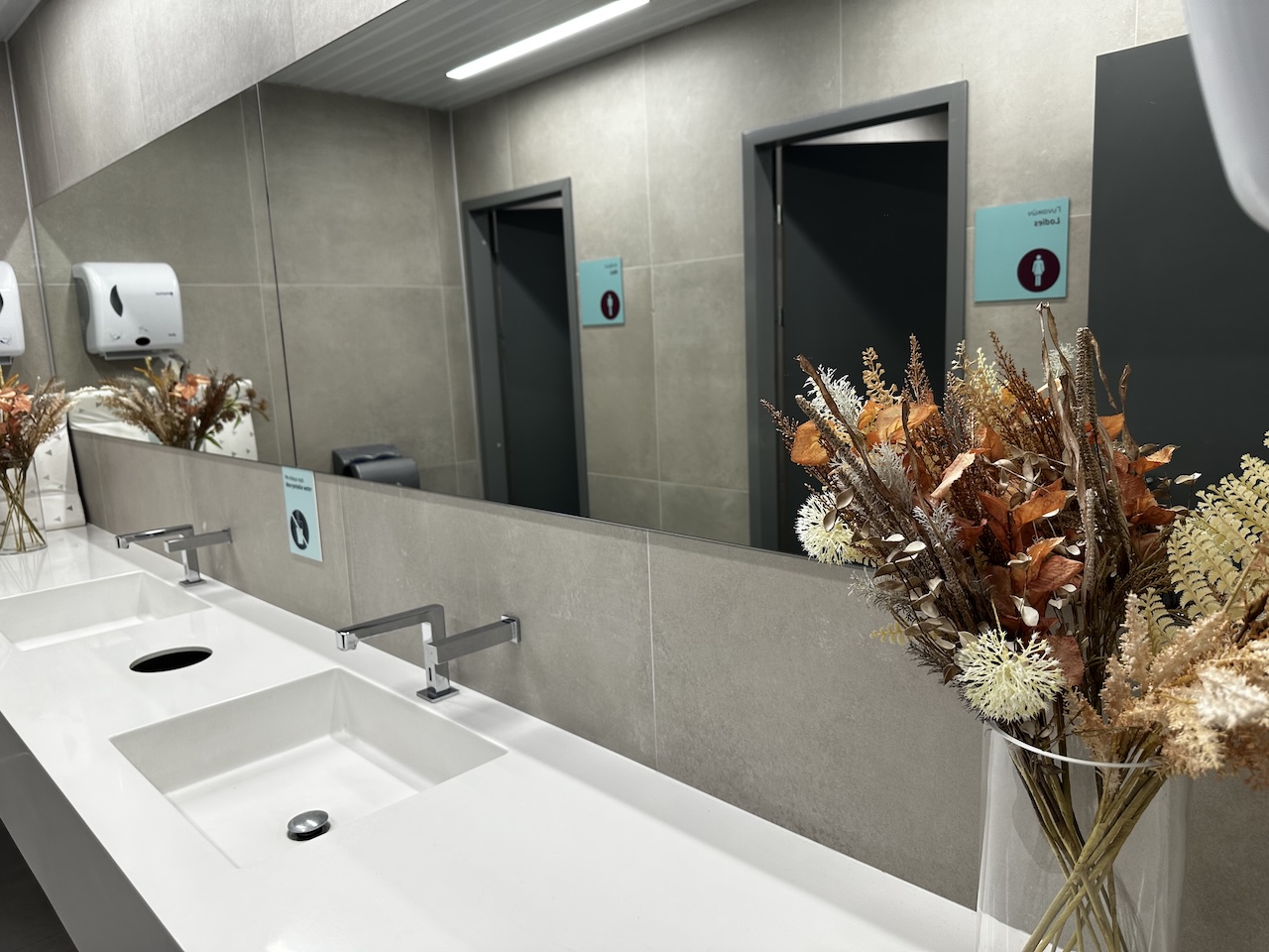 Die kleine Lounge hat ein eigenes W-LAN Netz, dieses konnte man mit einem Passwort nutzen, es funktionierte schnell und stabil. Außerdem gibt es auch eigene Waschräume mit Wickeltischen aber keine Duschen.