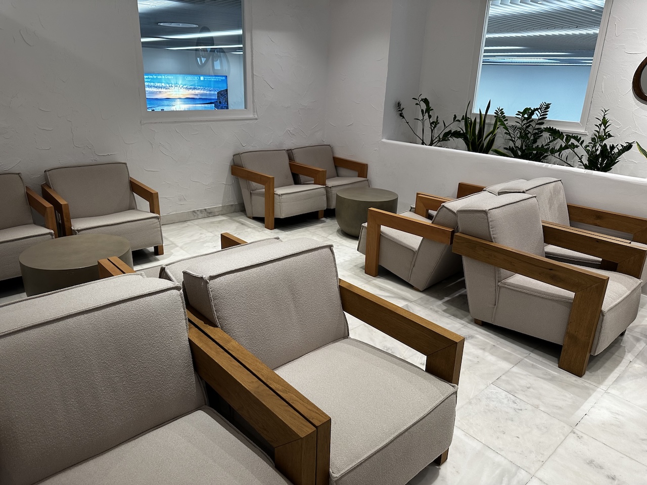 Die Mitarbeiterin am Empfang war bei fast allen Gästen, die nach uns kamen, damit beschäftigt, die Regeln zu erklären und Passagiere mit einem Business Class Ticket abzuweisen. Offensichtlich gab es aber auch für die Nutzerinnen und Nutzer bestimmter Kreditkarten Restriktionen, da sich mehrere Interessierte mit ihren Karten in der Hand wieder umdrehten und zurück ins Terminal gingen.