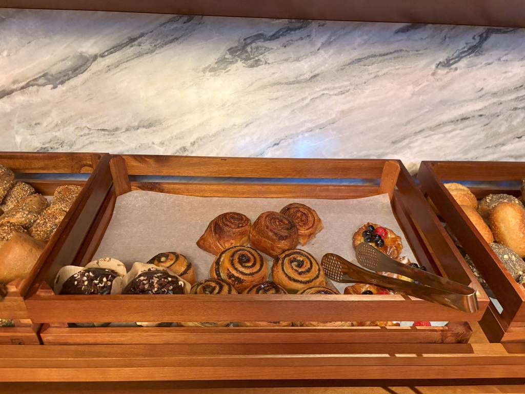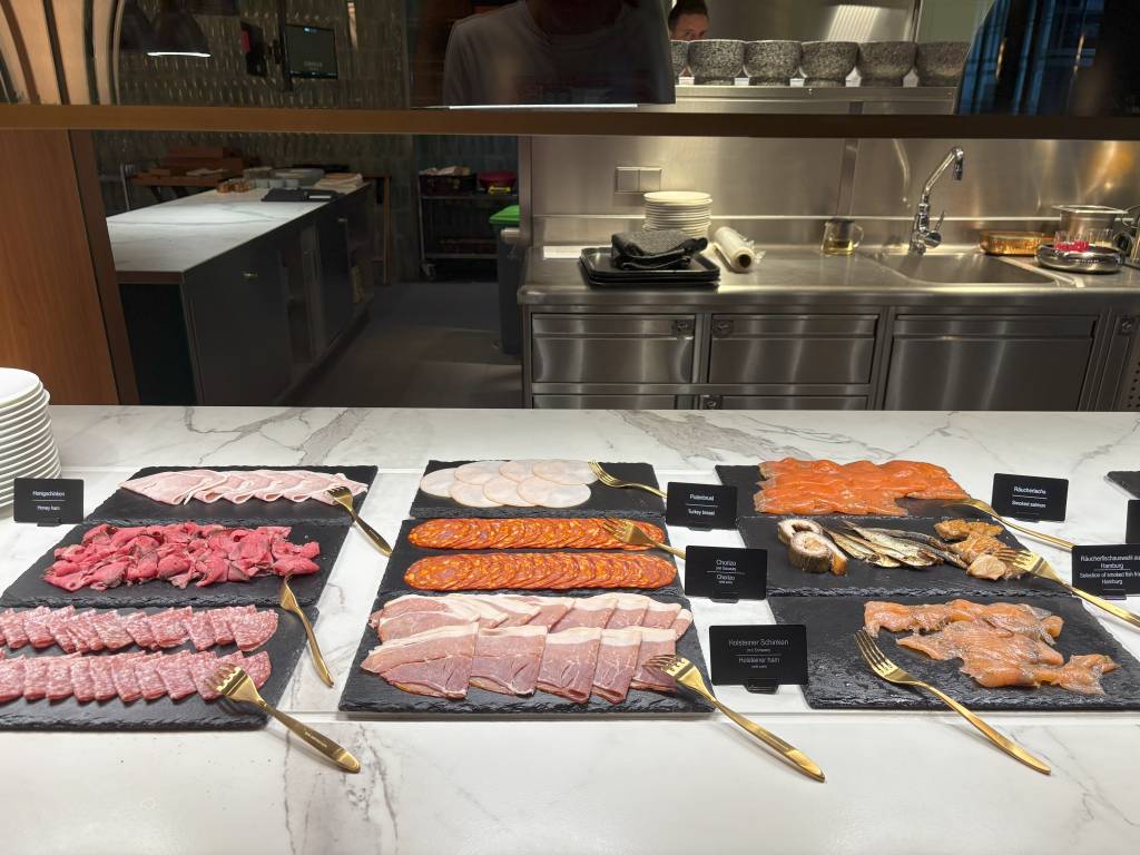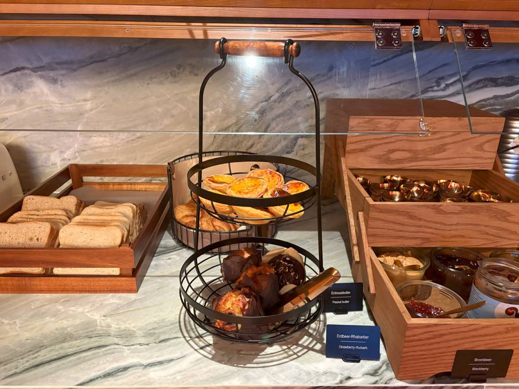 Natürlich fanden wir beim Buffet alles, was das Herz begehrt. Von warmen Optionen über Wurst- und Käseaufschnitt bis hin zu jeder Menge gesunden Gerichten war alles verfügbar. Besonders auffällig war die hohe Qualität der einzelnen Frühstücksbestandteile. Viele davon stammten von lokalen Unternehmen. Meine persönlichen Highlights waren die Fischplatte und die beiden Lachsaufschnitte sowie die originalen Hamburger Franzbrötchen. Letztere schaute ich mir jedoch nur aus sicherer Distanz an. Ich hatte am Vortag schon genug beim Afternoon-Tea gesündigt.
