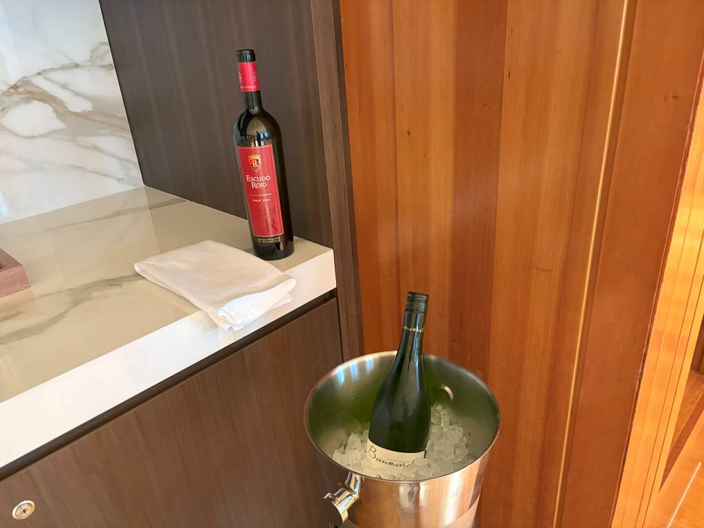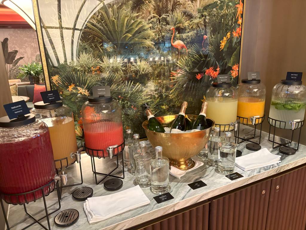 Drinks sollte es auch in der Executive Lounge geben. Bevor es für uns ins Restaurant ging, warfen wir daher einen Blick in die Lounge. Und tatsächlich: Dort standen etwas verlassen eine Flasche Rotwein und ein gut gekühlter Weißwein. Das Fehlen von Gin Tonic und Co. auch in der Lounge, überraschte mich dann schon.