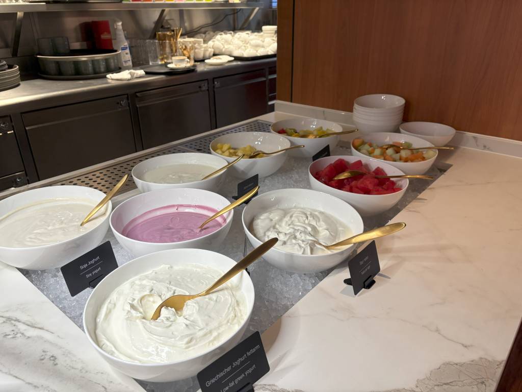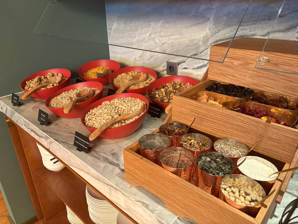 Das Buffet bietet für nahezu alle Ernährungsgewohnheiten die passenden Alternativen. Das macht sich stark bei dem umfangreichen Angebot an glutenfreien Optionen und der breiten Auswahl an Milchersatzprodukten von der Sojamilch bis zum Haferdrink bemerkbar.
