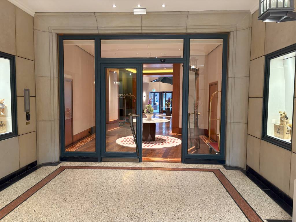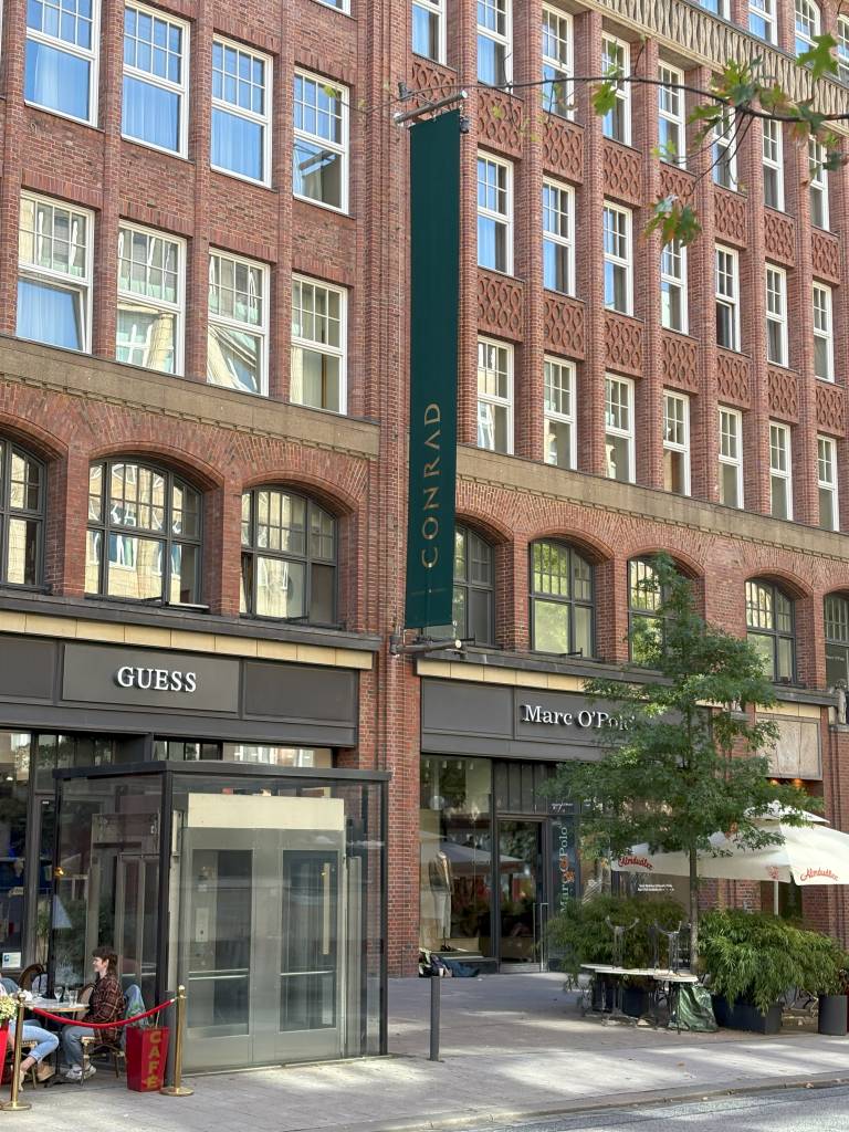 Als wir das Levantehaus über die Mönckebergstraße erreichten, fehlte uns ein erster Wegweiser. Zwar hingen große Banner mit dem bekannten Conrad-Schriftzug an der Häuserfront, doch ein Zugang zur Lobby war nicht auf den ersten Blick sichtbar. Dieser befindet sich nämlich in der Einkaufspassage des historischen Gebäudes. Fasst man einfach den Mut, dort einzutreten, läuft man auch zwangsläufig auf den Eingang des Hotels zu. Dennoch bleibt der Zugang von der Bugenhagenstraße einfacher.