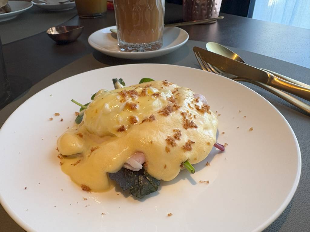 Gar nicht überzeugt haben mich die bestellten Eggs Benedict, die ich zweimal zurückgehen lassen musste. Meine offene Kritik wurde fast schon übertrieben zuvorkommend aufgenommen. Die Frage, was man denn jetzt für mich tun könne, war völlig unnötig. Pochierte Eier klappen leider in Hotels häufig nicht. Das ist zwar schade, weil in meinen Augen unnötig, aber kein Beinbruch. Das übrige Frühstück war viel zu gut, als dass es nun darauf angekommen wäre.