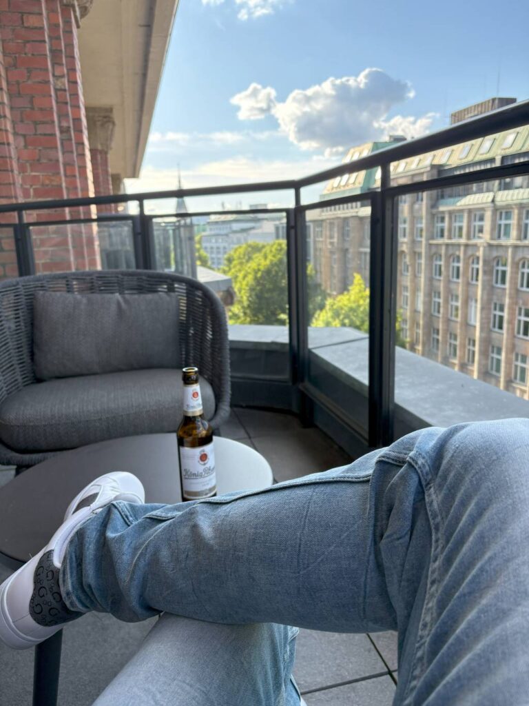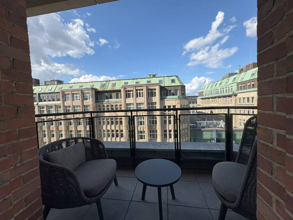 Auch wenn dieser nervige digitale Schlüssel noch eine Herausforderung im neuen System war, belastete das den Check-In nicht. Tatsächlich gab es sogar noch eine Überraschung für uns, denn wir wurden nochmals aus der bereits ausgewählten Suite geschmissen. Ganz zu unseren Gunsten, denn die neue Suite war die einzige mit zwei Balkonen zur Mönckebergstraße. Ihr Lieblingszimmer, wie uns Carina beim Check-In verriet.