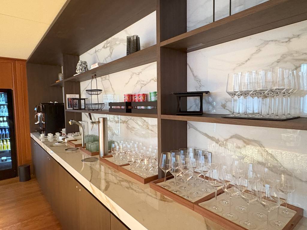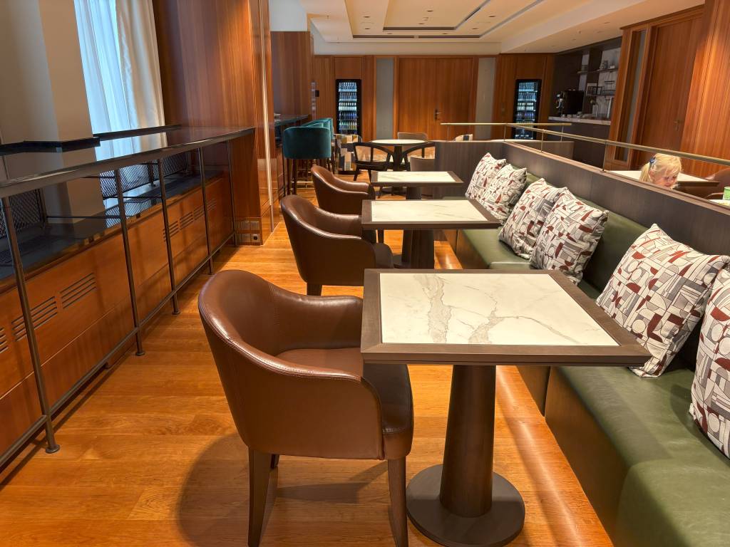 Die Lounge selbst gehört zu den großzügigeren Einrichtungen ihrer Art und bietet (hoffentlich) genügend Gästen in Zukunft Platz. Richtig gemütlich fand ich es allerdings nicht, da die Sitzmöglichkeiten entweder aus Zweier-Kombinationen bestehen oder größere Hochtische sind. Die eine oder andere Wohnlandschaft hätte der Atmosphäre gutgetan.