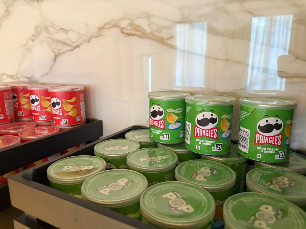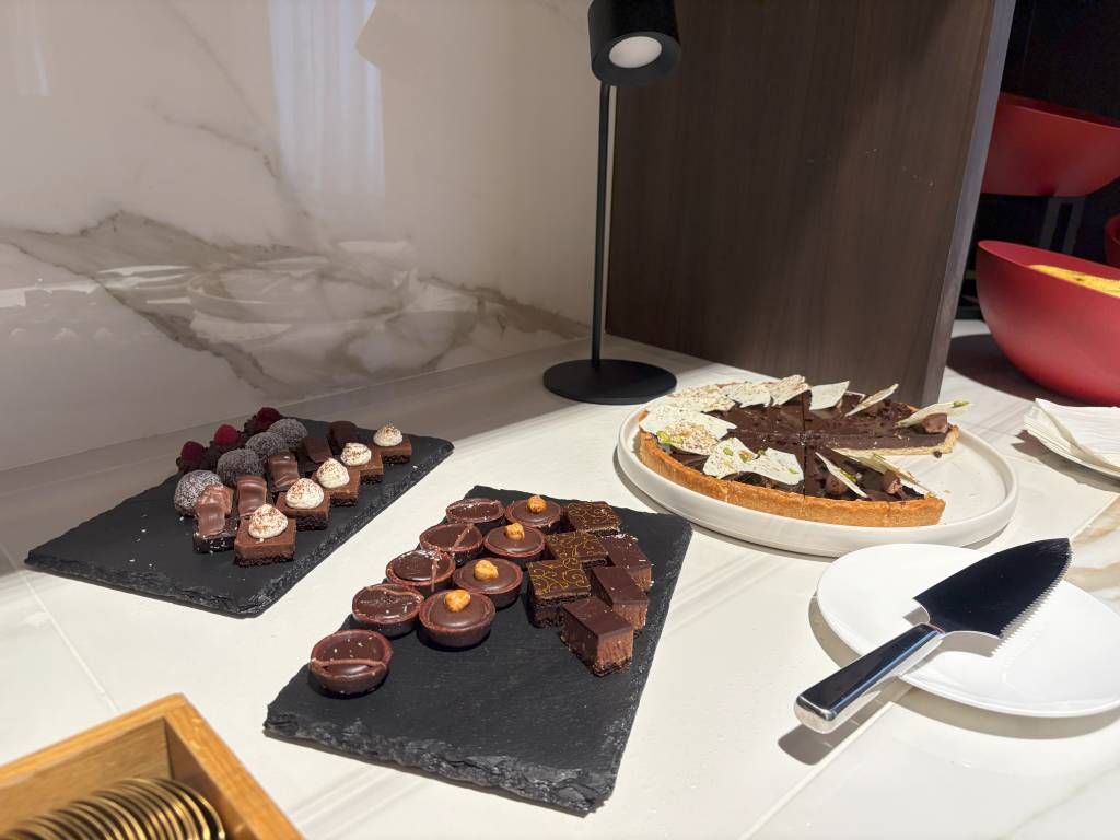 Zwischen 15:00 und 17:00 Uhr wird der Service in der Lounge um einen Afternoon Tea ergänzt, der aus leckeren belegten Brötchen, einer Torte und schokoladigen Petit Fours bestand. Süße und herzhafte Snacks sowie Obst sind auch über den Afternoon Tea hinaus verfügbar. Wie auch jede Menge Dosen Pringles, welche die Zwillinge an die Lounge fesselten.