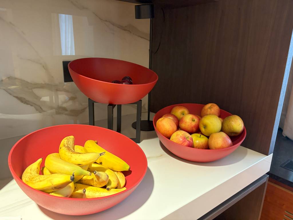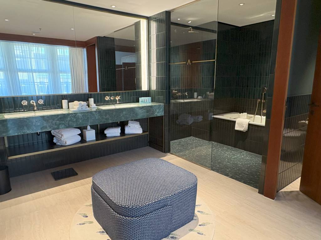 Während wir uns über ausreichend Handtücher freuen konnten, fehlten ein paar relevante Annehmlichkeiten wie Zahnbürsten und Rasierer. Details, die normalerweise in Hotels dieser Kategorie und in Suiten unabhängig davon zum Standard gehören. Ich vermute jedoch, dass diese Dinge in den kommenden Wochen noch ergänzt werden, wenn der Betrieb unter normalen Bedingungen läuft.