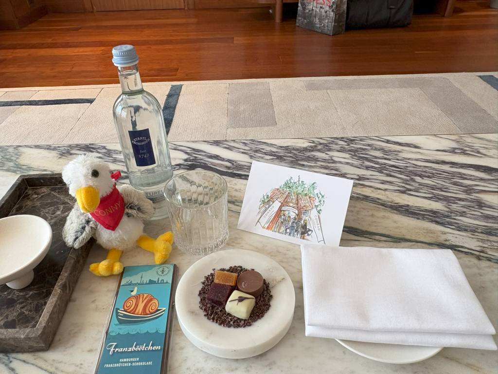 Der war dann gar nicht so kurz, denn die Dame am Empfang kümmerte sich rührend um uns. Wir freuten uns schon sehr, dass es im Conrad Hamburg endlich losging. Das Personal hatte diesen Moment ganz offensichtlich noch stärker herbeigesehnt.