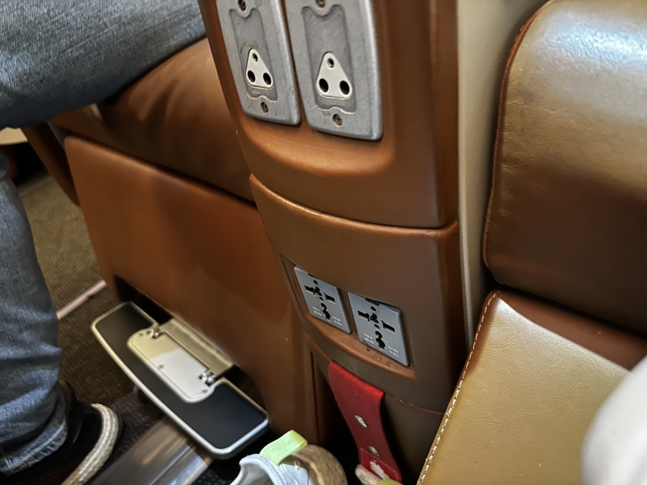 Die Rückenlehnen lassen sich großzügig nach hinten neigen, es gibt verstellbare Fußstützen. Alle Plätze haben Monitore, wobei diese auf unserem Flug deaktiviert waren, die Steckdosen funktionierten aber.