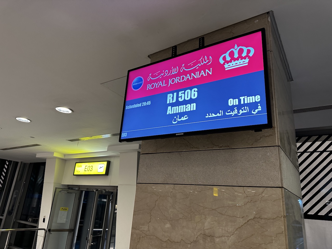 Nach der Anreise mit Lufthansa, einem Aufenthalt im Tageszimmer bei Hilton und einem Loungebesuch ging es endlich los. Der erste Flug meines oneworld Trips nach Australien war bereit zum Einsteigen. Ich kannte die Airline schon von einem Flug von Frankfurt nach Amman und hatte seitdem Royal Jordanian in bester Erinnerung. Bei der Strecke zwischen Kairo und Amman handelte es sich jedoch trotz der veränderten Flugroute (durch den Nahost-Krieg) nur um einen einstündigen Flug.