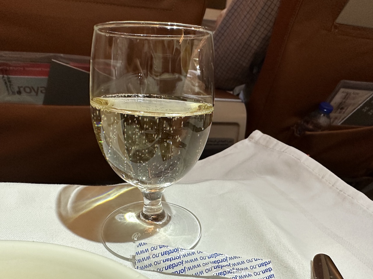 In den Menükarten waren keine Getränke aufgelistet, laut der Stewardess gab es auch Champagner (im Endeffekt war es Prosecco), bzw. Wein aus Jordanien.