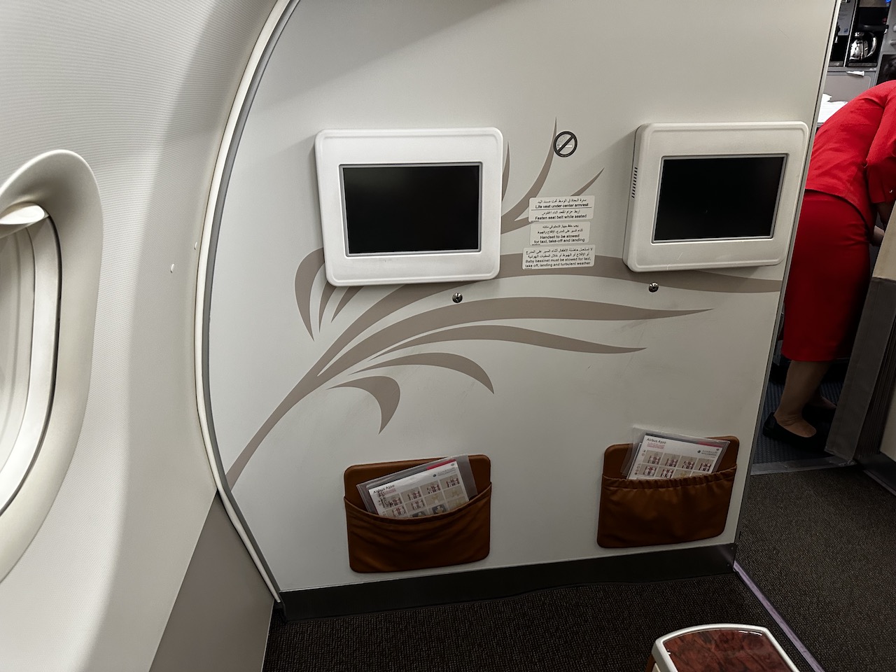 Man kann die Sitze zwar nicht flach stellen, der Komfort ist aber deutlich höher als auf den regulären Economy-Sitzen. Leider waren die Monitore außer Betrieb, bei diesem kurzen Flug aber wirklich nicht der Rede wert.