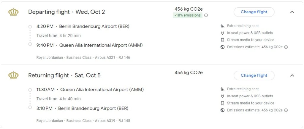 Ab dem 2. Oktober 2024 fliegt Royal Jordanian zwei Mal pro Woche von ihrem Drehkreuz Amman zum Flughafen Berlin-Brandenburg und noch am selben Tag wieder zurück. Die Flüge finden immer jeweils mittwochs sowie samstags statt und werden mit unterschiedlichen Kurzstreckenflugzeugen durchgeführt. In den ersten Monaten nach dem Start der Verbindung wechseln sich Airbus A319, A320 und A321 ab. Das Portal AeroRoutes.com berichtet sogar von geplanten Verbindungen mit der Embraer E195-E2. Das konnten wir für die ersten vier Monate jedoch nicht rekonstruieren. Dafür jedoch, dass ab Januar 2025 kontinuierlich auf den Airbus A321 von Royal Jordanian gesetzt wird.