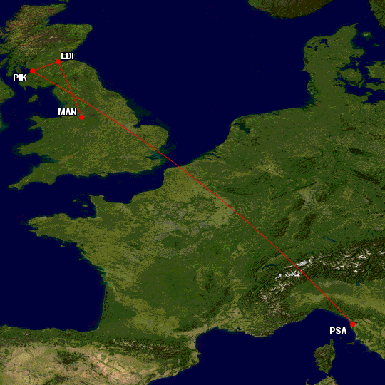 ⚠️ Flug: Ryanair FR3418 von Pisa nach Glasgow-Prestwick