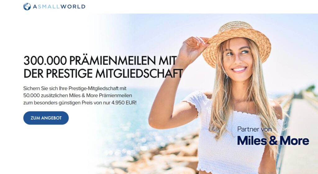 Viele Miles & More Mitglieder haben wohl schon von ASMALLWORLD gehört. Der Miles & More Partner, bei dem Ihr mal auf die schnelle Meilen im sechsstelligen Bereich sammeln könnt, wenn Ihr denn bereit seid, für eine Mitgliedschaft ein paar Tausend Euro auf den Tisch zu legen. Bei dem aktuellen Angebot sammelt Ihr sogar 300.000 statt der sonst üblichen 250.000 Prämienmeilen. Und Ihr zahlt dafür sogar noch 500 Euro weniger. Aber ist das wirklich ein guter Deal oder gibt es bessere Alternativen?