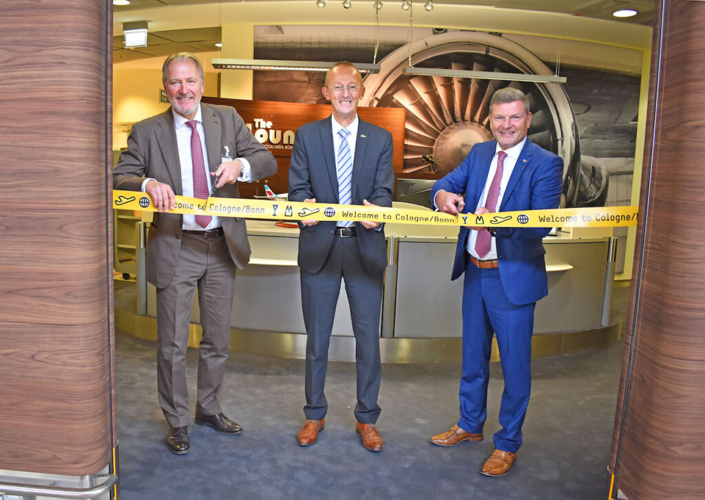 Kurz vor der Eröffnung präsentierte die Geschäftsführung des Flughafens die neue Lounge dem Eurowings-Chef Jens Bischof und dem Chef der Koelnmesse, Gerald Böse.