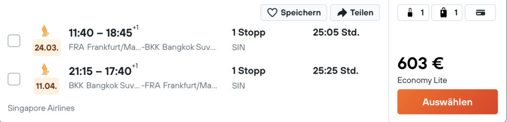 Singapore Airlines Angebote nach Bangkok ab 603 Euro (inkl. 25kg Gepäck) | Frankfurtflyer Kommentar