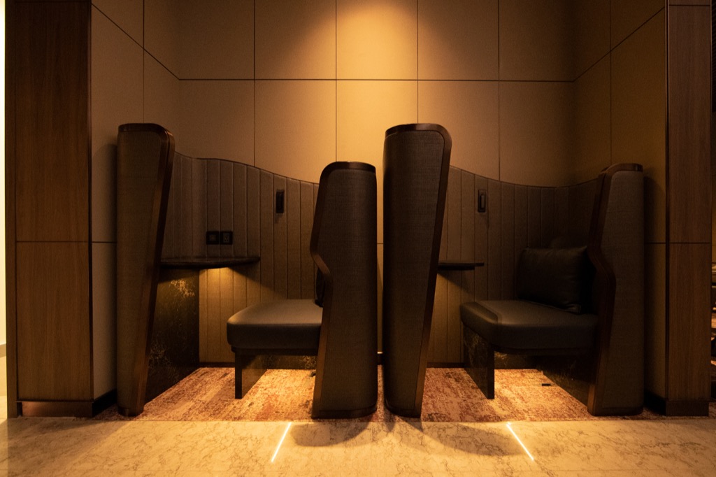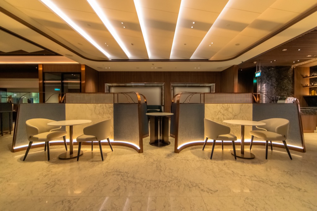 Mit 134 Sitzen ist die neue Singapore Airlines First Class Lounge durchaus auf einige Passagiere ausgelegt, dennoch hat man die Sitzgelegenheiten sehr großzügig gestaltet.