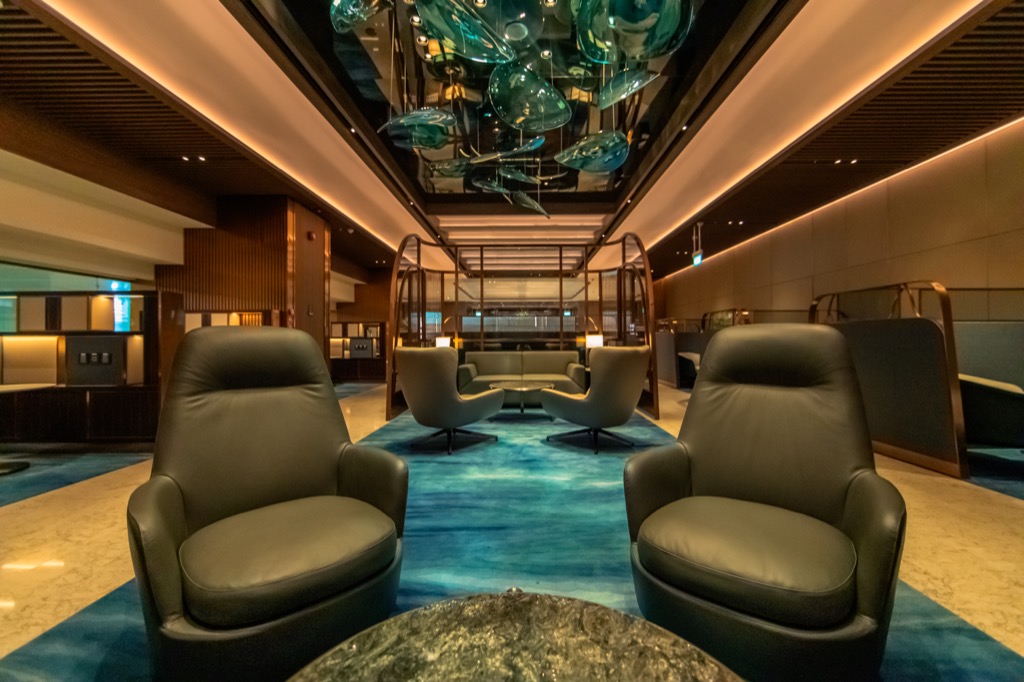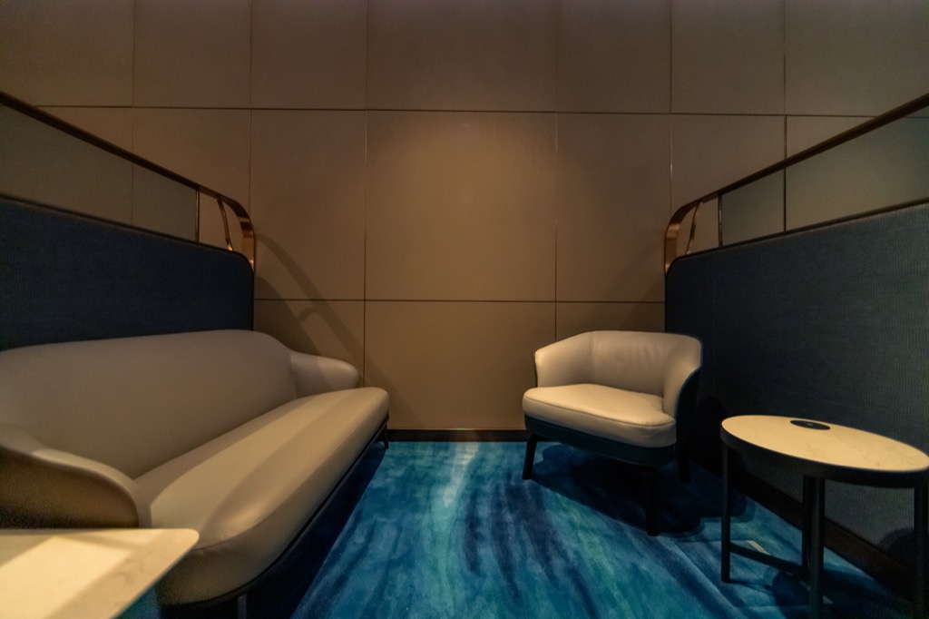 Dabei ist der Private Room eigentlich „nur“ ein Teil der First Class Lounge, denn er hat keinen eigenen Eingang und man wird durch die First Class Lounge zu dem Private Room begleitet. Hier finden maximal 78 Passagiere Platz, was aber mehr als genug ist für die wenigen Passagiere welche hier Zugang haben.
