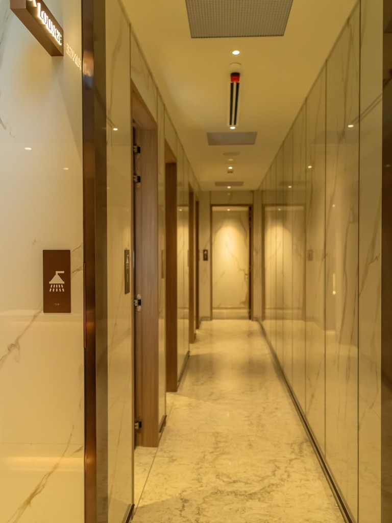 Wie es sich für eine First Class Lounge gehört, gerade an einem Langstrecken Drehkreuz wie Singapur, gibt es in der Singapore Airlines SilverKris First Class Lounge auch eigene Duschen in denen man sich frisch machen kann. Dabei teilt man die Duschen mit dem Private Room.