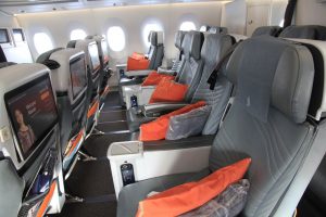 Singapore Airlines ist eine der wenigen Airlines weltweit, die von Skytrax mit 5 Sternen ausgezeichnet wurde. Im Airbus A380, der auf einigen Verbindungen nach Europa eingesetzt wird, findet man ausschließlich das Langstrecken Business Class Produkt in 1-2-1 Anordnung. Der berühmte freundliche und zuvorkommende Service der Singapore Airlines Cabin Crews kann mit dem Service mancher First Class mithalten. Insbesondere das Essen ist bei Singapore Airlines für eine Business Class meist überdurchschnittlich.