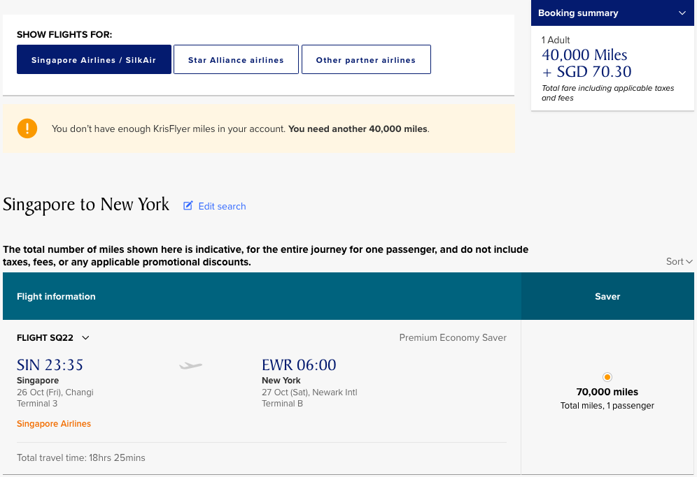 Um zu Buchen, wählt einfach den gewünschten Flug auf der Singapore Airlines Seite aus. Hier werden Euch die normalen Saver Level Preise angezeigt, allerdings wird der Meilenpreis automatisch um 30% Reduziert, bzw. bei SilkAir sogar um 50%.