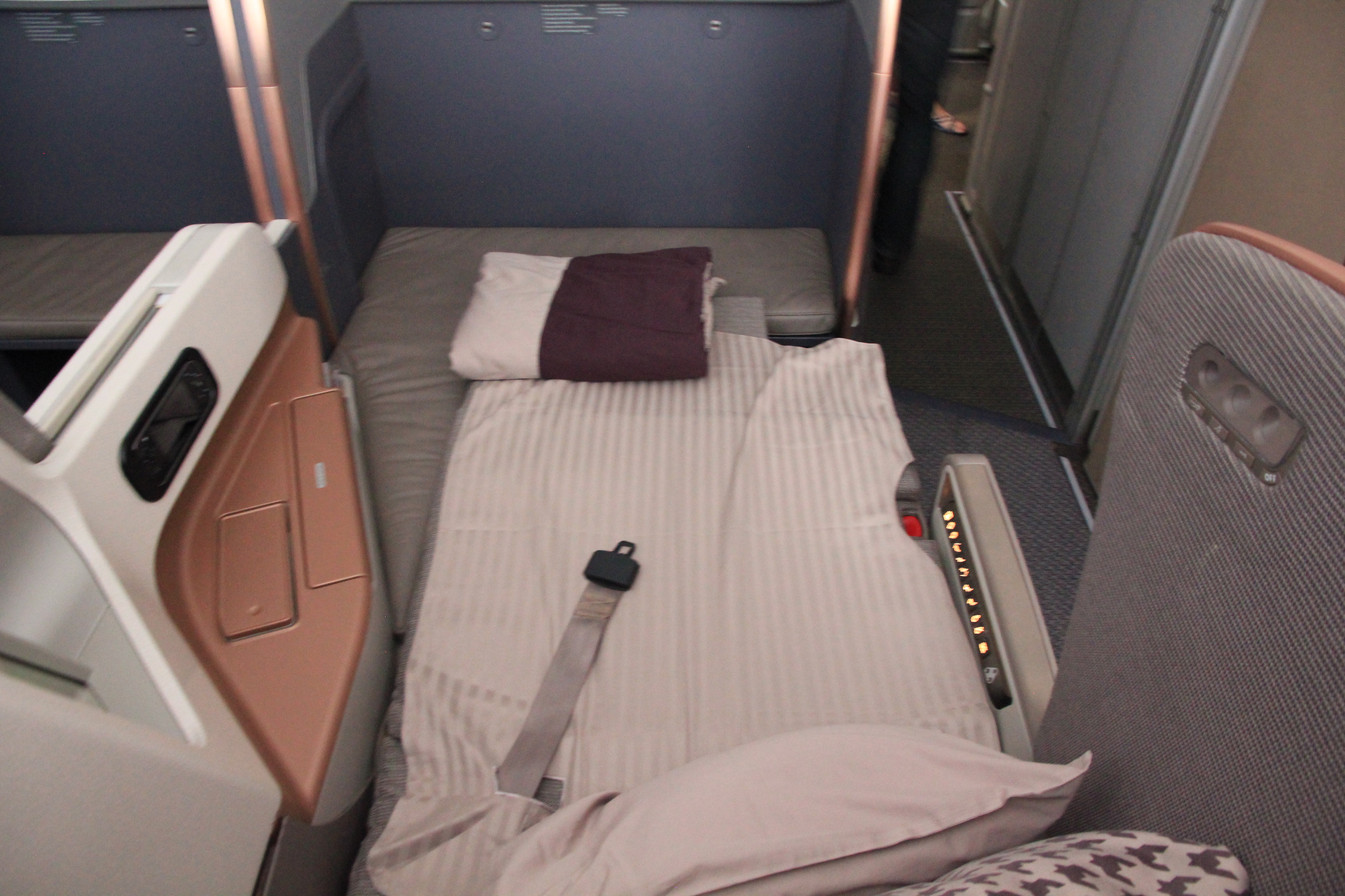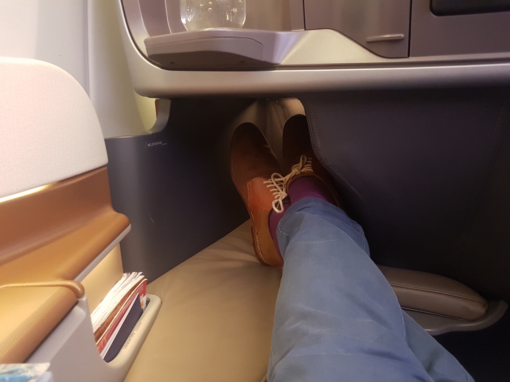 Dabei bekommt besonders der Business Class Sitz recht durchwachsene Bewertungen, denn er ist zwar sehr breit und extrem bequem zum Sitzen, allerdings muss man ihn zum Schlafen umklappen und kann ihn hier nicht stufenlos verstellen. Auch muss man quer im Bett liegen was bei einigen Passagieren nicht besonders beliebt ist, denn wenn man nicht gerade in der ersten Reihe sitzt, hat man ein sehr kleines Fußfach.