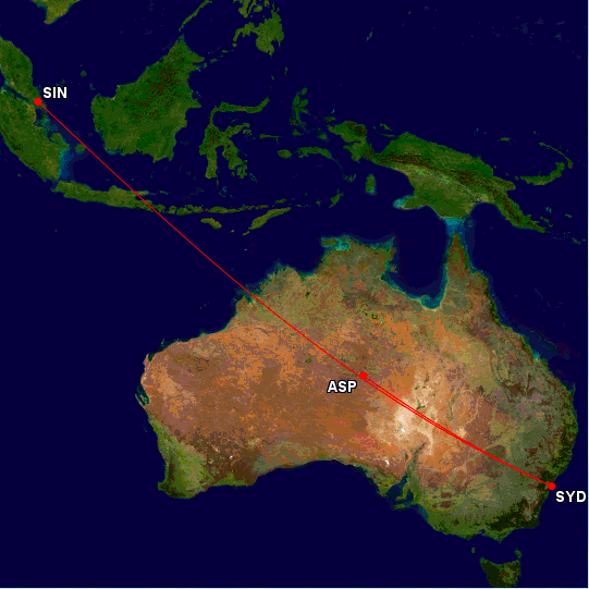 Diesen Umweg musste man wohl wählen, da Alice Springs nicht als internationales Gateway genutzt werden darf und man über einen Entsprechenden Airport das Land verlassen muss. Singapore Airlines hat hier Sydney gewählt.