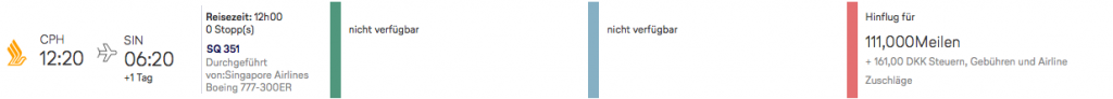 Dies ist sogar noch nicht einmal auf das Singapore Airlines KrisFlyer Programm beschränkt, denn Singaprore Airlines macht auf der Kopenhagen Verbindung regelmäßig First Class Awards auch für Partnerprogramme wie Miles&More verfügbar.