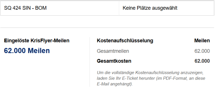 Dann hätte es den zweiten Platz doch aber auch als Prämienticket direkt gegeben und nur 58k Meilen gekostet statt 62k + C-Ticket. Oder?