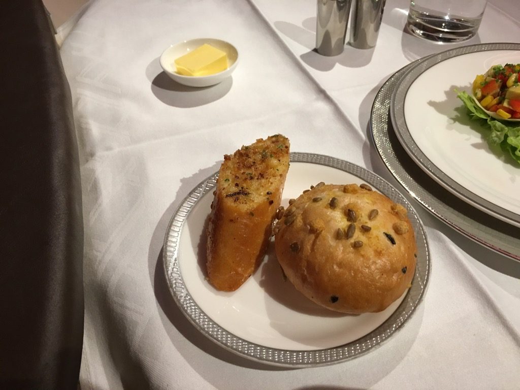 Schon vor dem Start hat man unsere gesamte Essensbestellung aufgenommen. Nachdem wir ja am Tag zuvor lange geschlafen haben, wollten wir den Flug auch genießen und haben uns dazu entschlossen, das gesamte Menü zu essen.