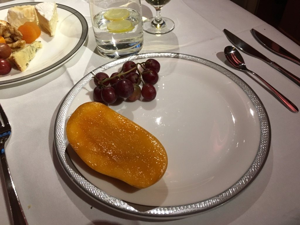 Während beide Hauptgänge sicher nicht die Offenbarung waren, war mein Gericht noch verhältnismäßig gut, wobei man in der First Class auch schon bessere Essen serviert hat. Auf Nachfrage haben wir erfahren, dass das Essen in Delhi geladen wurde und nicht aus Singapur mitgebracht wurde.