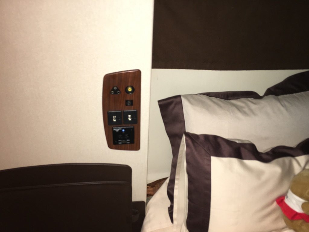 Für mich war das Doppelbett dennoch ein absolutes Highlight und obwohl ich mir vorgenommen habe, auf diesem Flug nicht zu schlafen, bin ich der Verführung des Bettes erlegen und habe fast drei Stunden sehr gut geschlafen.