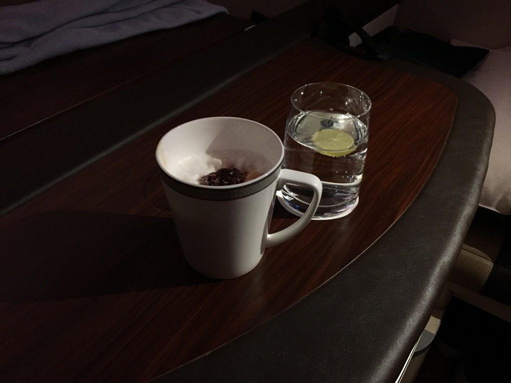 Nachdem ich bis etwa 30 Minuten vor der Landung in Singapur geschlafen habe, habe ich mich nur noch umgezogen und einen schnellen Cappuccino zum Aufwachen getrunken.