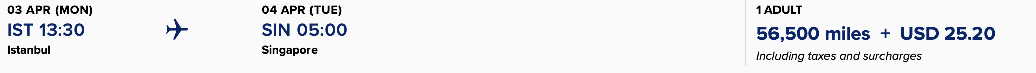 Dabei gibt es allerdings einen Sweet Spot, denn Singapore Airlines unterteilt nicht nur Europa in zwei Zonen, man hat auch die Türkei nicht als Europa eingeordnet und damit rückt Istanbul meilentechnisch sehr nah an Asien heran. Ein oneway von Istanbul nach Singapur kostet dann nur noch 56.500 Meilen und auch die Steuern und Gebühren sind mit gerade mal 25 Dollar noch einmal deutlich geringer.