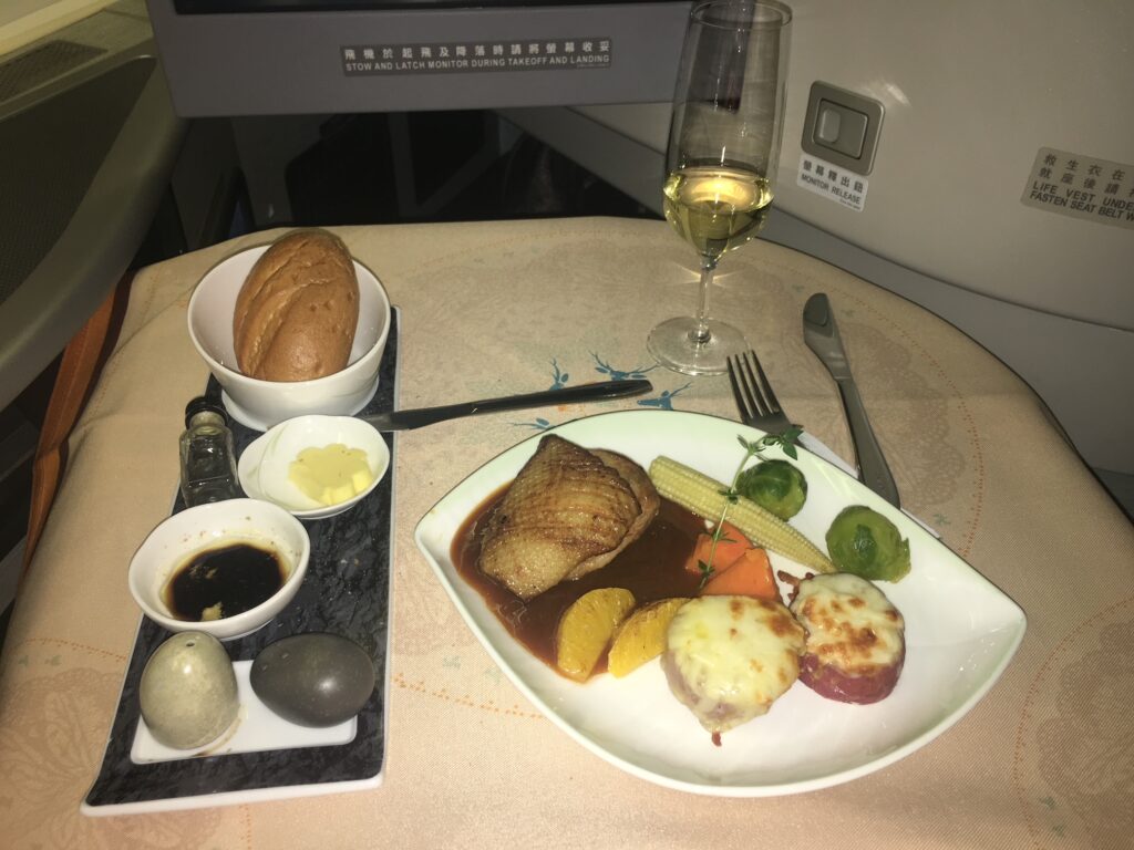 EVA Business Class Abendessen